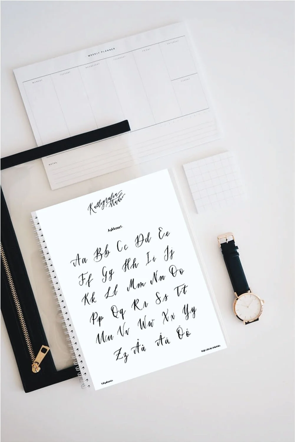Lataa ilmainen Modernin kalligrafian malliaakkosto ja aloita piirtämään kauniita kirjaimia vaikka heti tänään